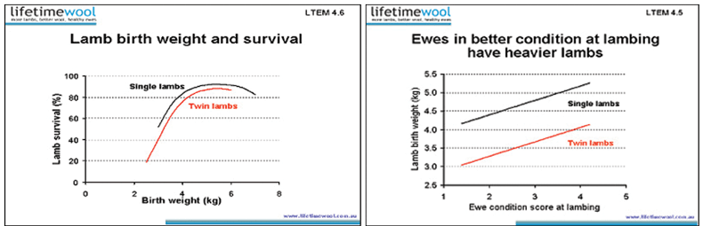 Below is an LTEM graph showing how ewe CS directly influences lamb birth weight, and their survival.